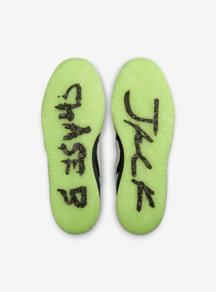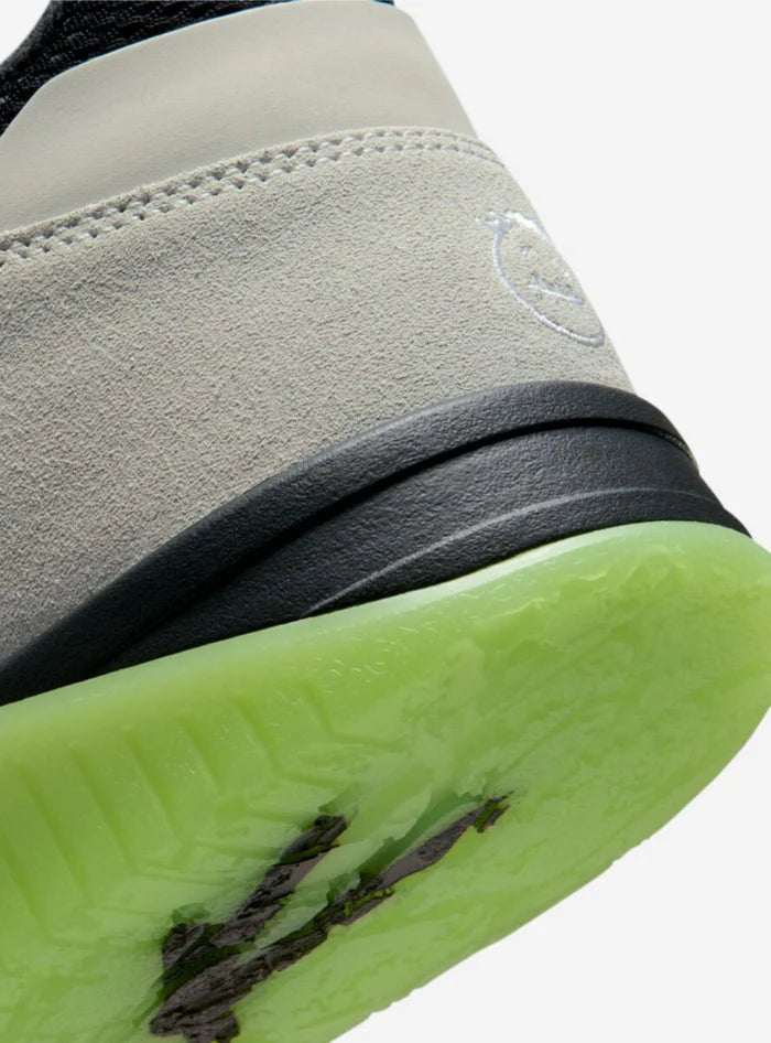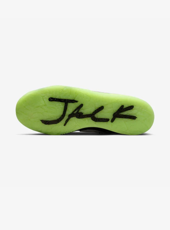 La tomaia delle Air Jordan Jumpman Jack Travis Scott x Chase B Night Silver alterna pelle nera premium, inserti in nubuck, e un elegante argento Night Silver applicato con finiture spazzolate. Il design resta fedele al DNA Jumpman Jack, con il celebre strap frontale, linee robuste e un carattere urbano inconfondibile, arricchito dal branding Cactus Jack e dai dettagli nascosti firmati Travis e Chase B.