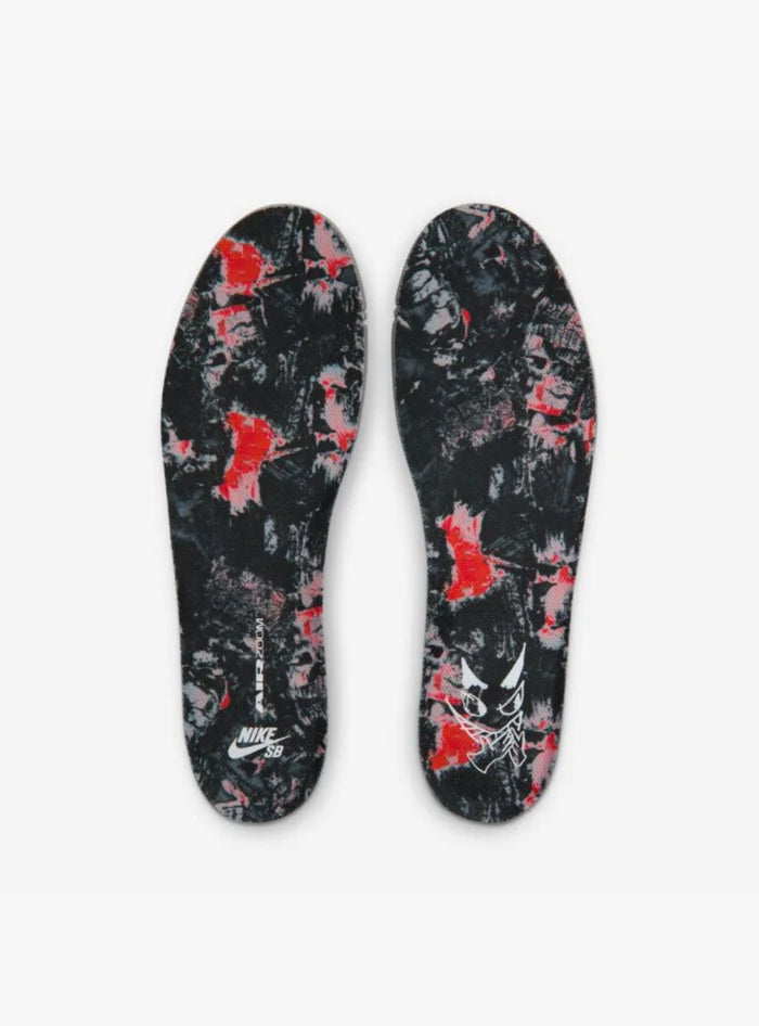 A rendere il modello ancora più unico è il co-branding sulla linguetta, con l’illustrazione del Krampus stesso: un design aggressivo, spigoloso e immediatamente riconoscibile dagli appassionati SB. La soletta interna presenta grafiche dedicate, mentre la suola presenta un mix translucent nero + glitter che completa perfettamente l’estetica dark-holiday.